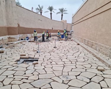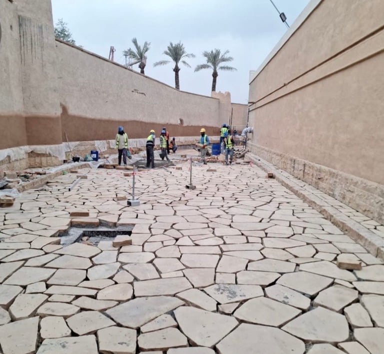 تنفيذ أعمال تنسيق المواقع والمساحات الخضراء بجودة عالية وتصميم جمالي مستدام.